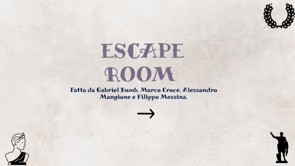 Mi tremarono le mani, l'acqua mi arrivo al collo ,mi mancava un ultima domanda. Presi un grande respiro e mi immersi spostai le lettere presenti e risposi alla domanda, pensai che per me fosse finita, ma la porta si apri e con essa venne fuori una statuetta che raccolsi: Scappai prima stanza. Nella seconda stanza erano presenti nel suolo dei fori nei quali si potevano notare degli spuntoni metallici. Notai che anche questa volta erano presenti delle domande di latino vicino all'uscita che erano il genitivo plur di bos, il complemento di tempo determinato, participio futuro, riconosvere un compl., infinito futuro di laudo. La stanza era molto piccola e priva di decorazioni. Comincia a rispondere alle domande, sbagliai la terza domanda e gli spuntoni si alzarono di 25 cm su per giù. Dopo aver risolto le cinque domande la porta si apri facendo cadere un 'altra statua che era incastonata in mezzo .