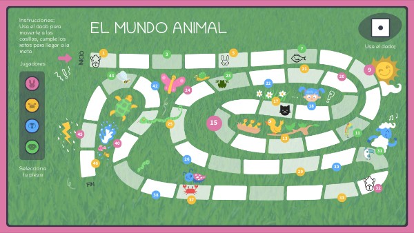 Instrucciones:Usa el dado para moverte a las casillas, cumple los retos para llegar a la meta