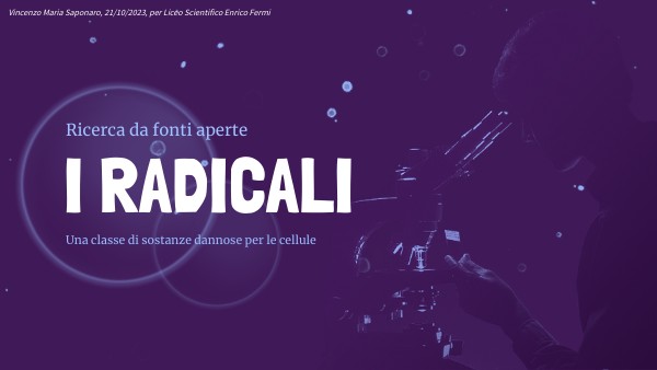 Radicale libero è una qualsiasi specie chimica, atomo o molecola, di natura organica o inorganica, che, avendo elettroni spaiati nei suoi orbitali, tende ad accoppiarli, nelle reazioni con altre specie, cedendone o acquistandone per eliminare la situazione di disaccoppiamento. (Treccani)