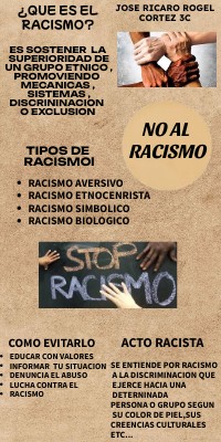 SE ENTIENDE POR RACISMO A LA DISCRIMINACION QUE EJERCE HACIA UNA DETERNINADA PERSONA O GRUPO SEGUN SU COLOR DE PIEL,SUS CREENCIAS CULTURALES ETC...