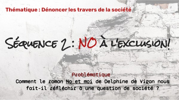 Problématique Comment le roman No et moi de Delphine de Vigan nous fait-il réfléchir à une question de société ?