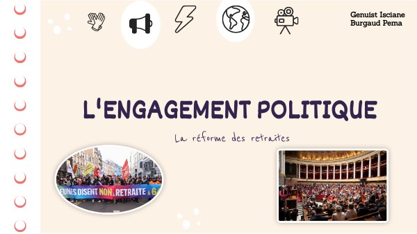 Engagement politique persiste dans nos sociétés démocratiques : - De divers mécanismes en place - La transformation de l’action collective La réforme des retraites: - Citoyens se sont engagés pour défendre une cause commune + des valeurs - Engagement favorisé par la SOP - Inter-classiste et intergénérationnel - Répertoire d’actions varié