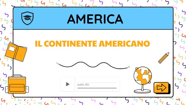 L'America è formata da due grandi CONTINENTI, l'America Settentrionale e l'America Meridionale uniti tra loro da UN ISTMO. Il continente americano è circondato da due grandi masse d'acqua: l'OCEANO ATLANTICO a Est l'OCEANO PACIFICO a Ovest.