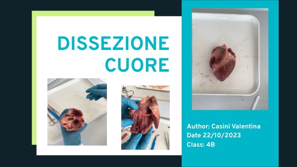 Seguiamo il percorso del sangue, partendo dalla vena cava superiore, col bisturi, procediamo ad parire atrio e ventricolo, di seguito potremo notare: