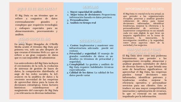 El Big Data es un término que se refiere a conjuntos de datos extremadamente grandes y complejos que requieren tecnologías y enfoques especiales para su almacenamiento, procesamiento y análisis.
