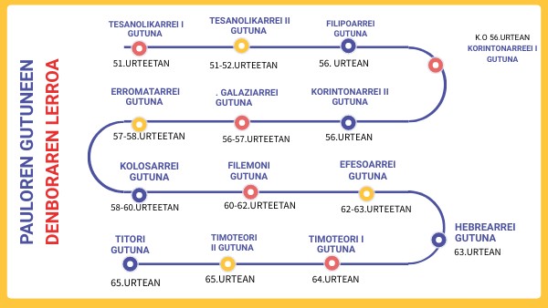 2. TIMOTEORI GUTUNAREN SARRERA NOIZ IDATZIA: 65 urtean idatzi zuen NORI IDATZITA: Timoteori egindako lehen gutuneko egoera eta giroa ez dira berdinak; oraingo honetan, idazlea kartzelan dago Erroman eta hurbil sumatzen du heriotza. ZERI BURUZ DOA GUTUNA: Hizkera askoz ere pertsonalagoa da; luzeago ematen du idazlearen egoeraren berri: Paulo kartzelatua dago, denek utzi dutela, baina nahigabe guztien artean Jaunak bizkortzen du; hurbil sumatzen du jadanik bere azken askapena. Esker onez aipatzen du Timoteo, beren arteko adiskidetasun mina eta apostolutzan nahiz erasoaldietan beti bat eginik egon zaion bere seme eta ikaslearen elkartasuna gogora ekartzen dituelarik. Lehenik, Paulorengandik hartu duen gordailua Espirituaren laguntzaz zaintzeko eskatzen dio Timoteori. Bigarren eta azkenik, bere burua berri onaren zerbitzura emateko eskatzen dio. ESKEMA: –Agurra, esker ona eta leialtasunerako deia (1,1-18). –Jesu Kristoren soldadu on bezala jokatu (2,1-13). –Artzain arduratsu eta frogatua (2,14–4,5). –Pauloren egoeraz berriak eta Timoteori aginduak (4,6-18). –Azken agurrak (4,19-22).