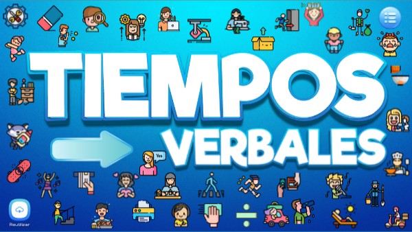 Practica los tiempos verbales (presente, pasado y futuro). Diferentes de juego dividos en dos niveles dependiendo del nivel de lectoescritura del alumnado.