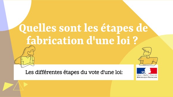 La création d'une loi en France se fait obligatoirement par le Parlement soit l'Assemblée Nationale et le Sénat qui vont examiner les propositions. Il va ensuite y avoir le passage en comission permanente, puis en séance publique et va ensuite être voté ou non par les membres des deux assemblés. Pour être validé, le texte doit être identique et voté par les deux assemblées. La procédure s'appelle "Navette Parlementaire".