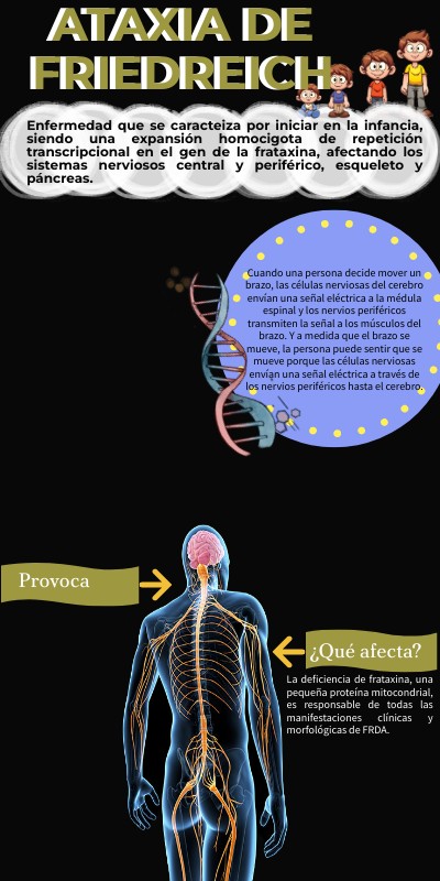 Enfermedad que se caracteiza por iniciar en la infancia, siendo una expansión homocigota de repetición transcripcional en el gen de la frataxina, afectando los sistemas nerviosos central y periférico, esqueleto y páncreas.