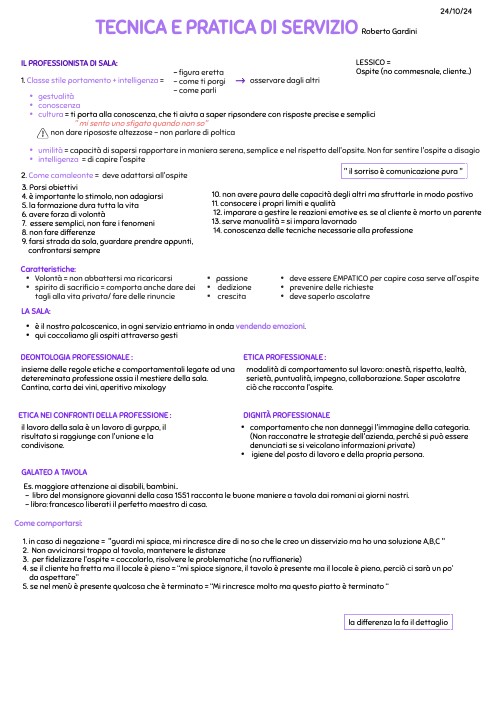 - empatico = conoscere chi ha difronte e come atteggiarsi all’ospite - carismatico - tatto, cortese ,diplomatico - problem solving: saper gestire le situazioni difficili, come gestire un reclamo,(bisogna ascoltare, mi spiace averle creato un disservizio, normalmente non è una cosa che accade nel nostro ristorante, offrire un vino o un grande distillato), “sarà mia cura di seguirla in prima persona”