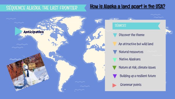 Groups 1 & 2: Work on the video Groups 3 & 4: Work on the recording Groups 5 & 6: Work on State facts Put in common in order to prepare an infographic on Alaska.