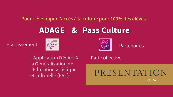 A partir de la plateforme ADAGE. En permettant aux enseignants de développer ou de créer des projets EAC qui s’appuient sur le choix d’offres collectives proposées par les acteurs culturels. En permettant aux chefs d’établissement de valider ces choix et de les faire financer sans transfert de fonds, via l’application ADAGE