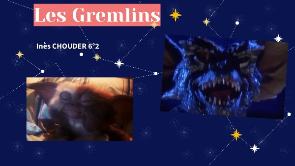 Dans le film, un "mogwai " est un animal à poil doux de petite taille (15 à 20 centimètres), bipède, avec une face plate et de grandes oreilles. Ses mains ne comptent que trois doigts, sa voix aiguë lui permet un chant harmonieux qui s'apparente à une berceuse. Alors que le "gremlin" est une créature terrifiante aux grandes oreilles, aux dents acérées , avec de longues griffes et avec une peau de crocodile.Le chef Stripe a une crête blanche et des rayures blanches (d'où son nom).Et il y a Greta, la seule femmelle qui a de longs cheveux verts, une grosse bouche et elle est trop maquillée.