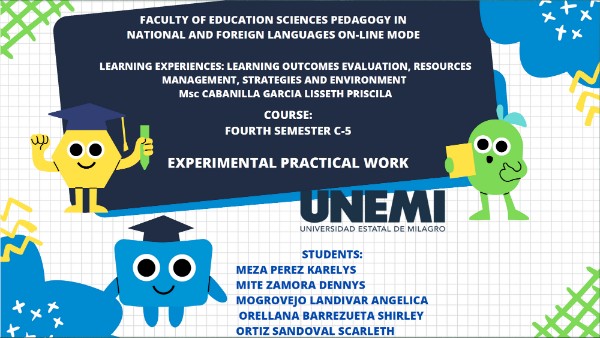 LEARNING EXPERIENCES: LEARNING OUTCOMES EVALUATION, RESOURCES MANAGEMENT, STRATEGIES AND ENVIRONMENT Msc CABANILLA GARCIA LISSETH PRISCILA