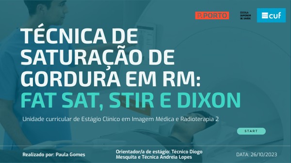 Em modo de conclusão, todas as técnicas acima referidas para saturação de gordura são válidas e fornecem o objetivo a que são aplicadas. Cada técnica tem as suas vantagens e desvantagens associadas, e a aplicação deve de ser pensada e adaptada quer ao paciente, tipo de equipamento, patologia bem como anatomia em estudo.