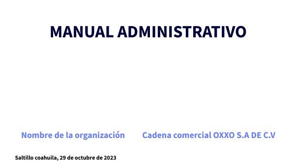 El presente manual se relizo en la empresa OXXO,la cadena de tiendas de convenencia ma sgrande de América latina con sus oficinas en el domicilio de avenida de las Americas 1064 colonia Cumbres Saltillo Coahuila C.P 25270 este manual tiene comó propósito orientar al personal, delimitar responsabilidades e identificar comisiones.