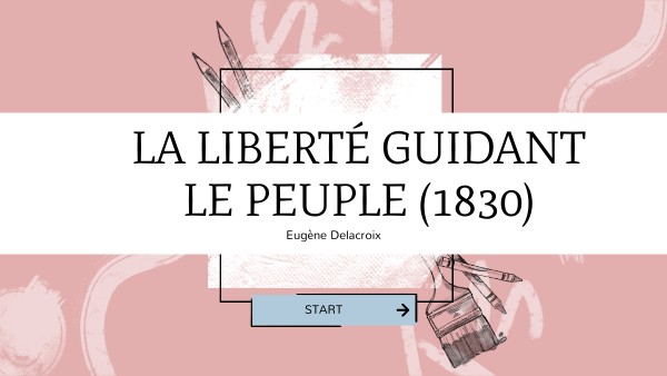 C'est à Théodore Géricault qui revient le mérite d'avoir réalisé le premier chef d'oeuvre romantique en peinture, avec Le radeau de la Méduse.La Méduse est un vaisseau qui a fait naufrage en 1816 en raison de l'incompétence du gouvernement royal. 11 ans plus tard, Delacroix rend hommage à Géricault par des citations claires: le cadavre allongé, le corps nu en chemise, le torse coupé.