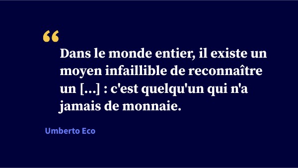 Dans le monde entier, il existe un moyen infaillible de reconnaître un [...] : c'est quelqu'un qui n'a jamais de monnaie.