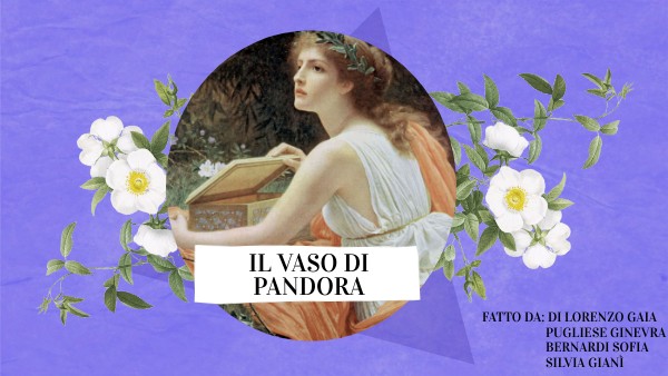 Alla fanciulla viene affidato un vaso da dare agli uomini, con la premessa di non aprirlo ma di custodirlo.Pandora non seppe resistere alla curiosità e decise di aprirlo.