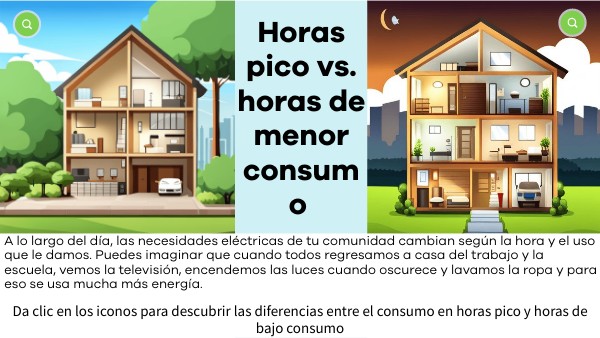 Da clic en los iconos para descubrir las diferencias entre el consumo en horas pico y horas de bajo consumo