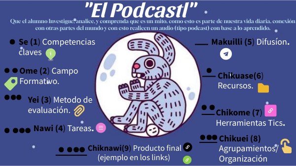 Los momentos para implentar el trabajo colegiado son: 1.-Nos motivamos: Lluvia de ideas en torno a la pregunta “Que sabemos sobre los mitos y como esto forman parte de nuestra historia”, 2.-Planificamos: En equipo se organiza que vamos hacer, es decir buscar leyendas como ejemplo y delegar responsabilidades 3.-Indagamos : Los alumnos van a explorar y analizar la información acerca de mitos de como se fundaron las civilizaciones en el aula de medios por el cual van a realizar una investigación en equipo acerca de las culturas. 4.-Resolvemos: Con la información obtenida de la clase anterior elaborar el guion para su podcast contando un mito fundacional de una de la civilización, como también con el iPad de la maestra buscarán efectos que les puedan ayudar y harán el primer intento para grabar. 5.Producimos: Los equipos van a grabar los audios en frente de todo el salón y/o podrán salir a las canchas o patio (antes de que el maestro se vaya deberán entregarlo por vía bluetooth). 6.-Socialisamos: 1-Por medio de el juego papel o tijeras los grupos presentaran su audio al resto del salón. En el transcurso que escuchen los podcasts en su cuaderno apuntaran las similitudes y diferencias de los mitos que les tocaron. (dentro de este punto los alumnos de cada grupo realizaran una coevaluación y autoevaluación) 2.-En plenaria se discutirán las similitudes y diferencias por el cual saldrá una conclusión de la importancia de conocer los mitos del origen de México e incluso contextualizarlo en la vida personal.
