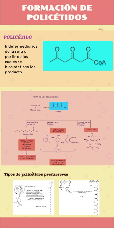 Los policétidos son metabolitos secundarios de bacterias, hongos, plantas y animales. Los policétidos son biosintetizados por la polimerización de subunidades acetilo, y propionilo obtenidas por descarboxilación de malonil coenzima A o metilmalonil coenzima A en un proceso similar a la biosíntesis de ácidos grasos (una condensación de Claisen). De hecho las enzimas de biosíntesis de ácidos grasos son consideradas como una variante de las policétido sintasas1 Son los bloques de construcción de un amplio rango de productos naturales.