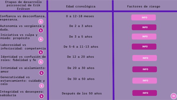 Referencias Bordignon, N. (2005). El desarrollo psicosocial de Eric Erikson. El diagrama epigenético del adulto. Revista Lasallista de Investigación, 2(2), 50-63. https://www.redalyc.org/pdf/695/69520210.pdf Herrera, P. (1999). Principales factores de riesgo psicológicos y sociales en el adolescente. Revista Cubana de Pediatría, 71(1), 39-42.http://scielo.sld.cu/scielo.php?script=sci_arttext&pid=S0034-75311999000100006&lng=es&tlng=es.