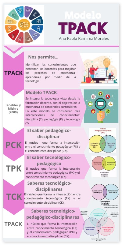Se integra la tecnología vista desde la formación docente, con el objetivo de la enseñanza de contenidos curriculares. En este modelo se consideran tres intersecciones de conocimientos: disciplina (C), pedagógia (P) y tecnología (T).