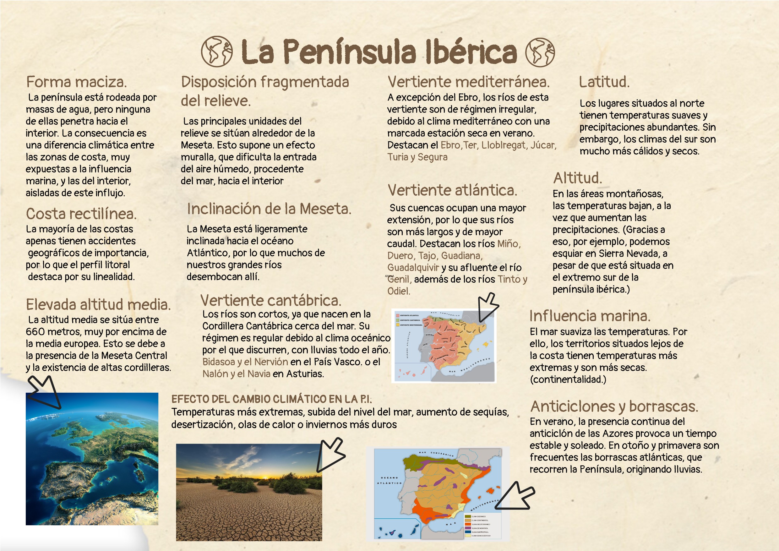 EFECTO DEL CAMBIO CLIMÁTICO EN LA P.I: Temperaturas más extremas, subida del nivel del mar, aumento de sequías, desertización, olas de calor o inviernos más duros