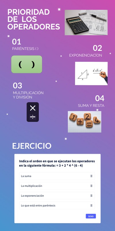 Infografía referente a la prioridad de los operadores en las hojas de cálculo.