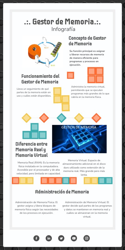 Administración de Memoria Física: El gestor asigna y libera bloques de memoria física según las necesidades de los procesos en ejecución.