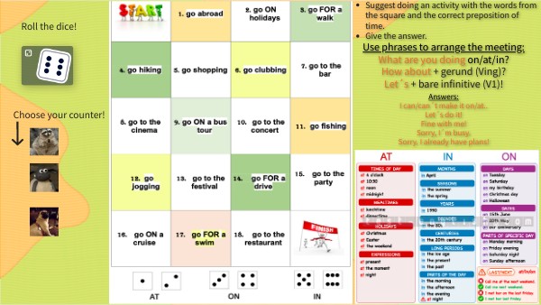- Suggest doing an activity with the words from the square and the correct preposition of time.