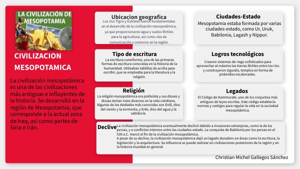 La civilización mesopotámica es una de las civilizaciones más antiguas e influyentes de la historia. Se desarrolló en la región de Mesopotamia, que corresponde a la actual zona de Iraq, así como partes de Siria e Irán.
