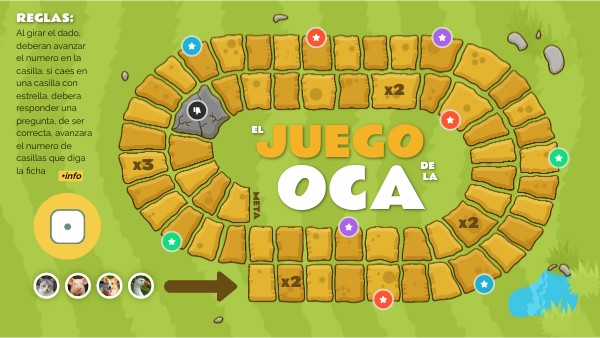 Al girar el dado, deberan avanzar el numero en la casilla. si caes en una casilla con estrella, debera responder una pregunta, de ser correcta, avanzara el numero de casillas que diga la ficha