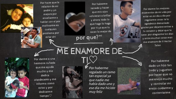 Por darme los mejores momentos de mi vida por estar en mi dia a dia por regalarme cosas te lo agradezco demasiado gracias por dejarme entrar a tu corazon y dejar que te bese por alegrarme los dias y entre muchas cosas mas me enamore de ti Hector Salas