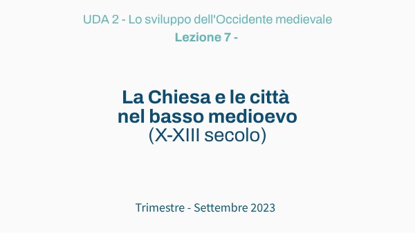 UDA 2 - Lo sviluppo dell'Occidente medievale Lezione 7 -