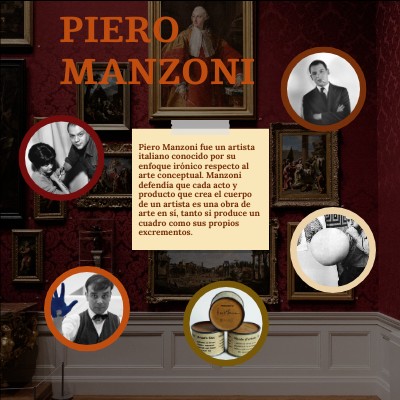 Piero Manzoni fue un artista italiano conocido por su enfoque irónico respecto al arte conceptual. Manzoni defendía que cada acto y producto que crea el cuerpo de un artista es una obra de arte en sí, tanto si produce un cuadro como sus propios excrementos.