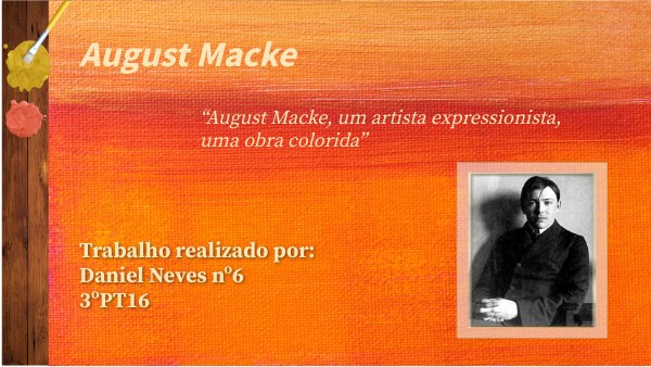 August Macke foi um pintor expressionista alemão. Deixou uma coleção de mais de 500 pinturas que descrevem cenas do cotidiano. Foi membro do “Der Blaue Reiter” que na língua portuguesa significa O Cavaleiro Azul, designa um grupo de pintores expressionistas que desenvolveram atividade em Munique, entre 1911 e 1913. Este grupo, criado pelo pintor russo Wassily Kandinsky e pelo alemão Franz Marc, integrava alguns dissidentes da "Nova Associação de Artistas", formada na mesma cidade em 1909. O nome que adotaram para este movimento sintetiza a paixão de Franz Marc pelo cavalo e de Kandinsky pela cor azul. Ele também foi influenciado pelo cubismo, mas será para sempre relacionado ao expressionismo alemão.