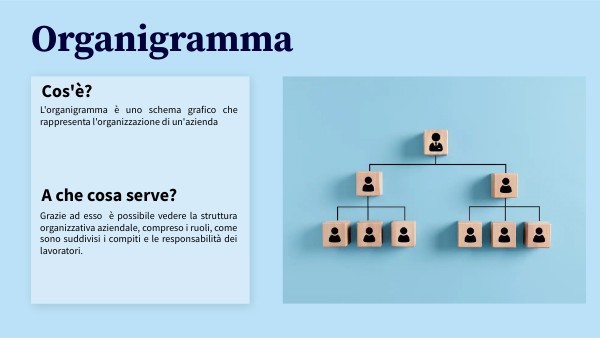 Grazie ad esso è possibile vedere la struttura organizzativa aziendale, compreso i ruoli, come sono suddivisi i compiti e le responsabilità dei lavoratori.