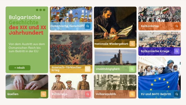 https://www.honorarkonsul-bulgarien-hessen.de/geschichte-bulgarien/ https://de.wikipedia.org/wiki/Geschichte_Bulgariens https://en.wikipedia.org/wiki/Bulgarian_National_Revival https://simpleclub.com/lessons/geschichte-balkankriege https://de.wikipedia.org/wiki/Alexander_I._(Bulgarien) https://en.wikipedia.org/wiki/Ferdinand_I_of_Bulgaria https://en.wikipedia.org/wiki/Russo-Turkish_War_ https://en.wikipedia.org/wiki/Treaty_of_Berlin_(1878) https://de.wikipedia.org/wiki/Volksrepublik_Bulgarien