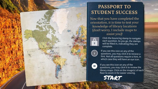 Now that you have completed the orientation, it is time to test your knowledge of library locations (don't worry, I include maps to assist you)!