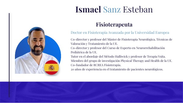Máster en Neurocontrol Motor por la Universidad Rey Juan Carlos. Terapeuta Bobath acreditado por la IBITA. Profesor de la Universidad Europea de Madrid. Director del Centro de Neurorrehabilitación Neuro y Forma (Madrid). Más de 25 años de experiencia en el tratamiento de pacientes neurológicos.