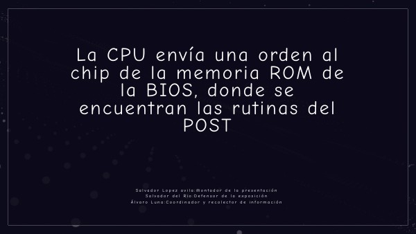 La CPU envía una orden al chip de la memoria ROM de la BIOS, donde se encuentran las rutinas del POST