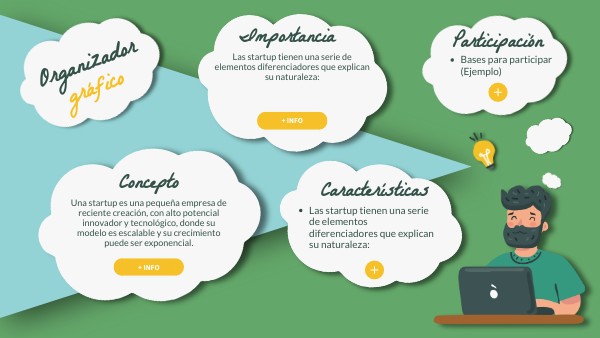 Carácter temporal: La startup como organización tiene un carácter limitado. Es decir, hace alusión a la emergencia de una compañía que finaliza con su conversión en negocio estable. En otros casos, el final es precisamente lo opuesto. Es decir, desaparecen (no son pocas las startup que fracasan). Carácter novedoso: La innovación es la esencia de toda startup. A menudo referida a su fuerte vinculación con las nuevas tecnologías y el mundo internet. Una novedad que supone siempre una ventaja competitiva frente a otras compañías. Y que, además, también puede aplicarse al carácter diferencial de su negocio o de los procesos productivos que emplea. Costes reducidos: Su ligazón con las TIC hace de estas jóvenes empresas un negocio muy atractivo. En sus etapas iniciales no exige grandes cantidades de dinero para su puesta en marcha. A diferencia, claro está, de las compañías que operan en otros ámbitos. Financiación externa: Aunque los costes de arranque son mínimos, a medio plazo las ganancias de la startup son considerables. A consecuencia de este crecimiento acelerado muchos inversores externos se sienten atraídos. A estos inversores se les conoce como Inversores Ángel (Business Angel). Aportan una pequeña financiación a cambio de acciones o participaciones en la empresa. Objetivo y riesgos: Las startup asumen un fuerte riesgo ya que su objetivo es dominar un nicho de mercado (a menudo poco explorado) en el que trabajan a base de hipótesis. Este ámbito de incertidumbre requiere una gran capacidad de adaptación a los cambios. La meta, por tanto, consiste en hacer que esas hipótesis funcionen, que los productos o servicios ofertados sean aceptados por sus clientes, manteniendo unas ganancias elevadas que le permitan retornar la inversión (garantizando la escalabilidad del negocio).