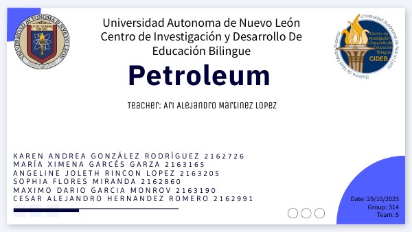 Composition, classification, and properties of petroleum. (2013). In Cambridge University Press eBooks (pp. 174–191). https://doi.org/10.1017/cbo9780511844188.012 Helmenstine, A. M., PhD. (2019, December 6). Chemical composition of petroleum. ThoughtCo. https://www.thoughtco.com/chemical-composition-of-petroleum-607575 Government of Canada, Statistics Canada. (2019, April 1). Display definitions - Classification of Refined Petroleum Products - 1 - Motor gasoline. https://www23.statcan.gc.ca/imdb/p3VD.pl?Function=getVD&TVD=1175271&CVD=1175272&CLV=0&MLV=3&D=1 El petroleo y la politica exterior de Mexico: del auge petrolero a la privatizacion. (n.d.). vLex. https://vlex.com.mx/vid/petroleo-politica-exterior-mexico-634569425