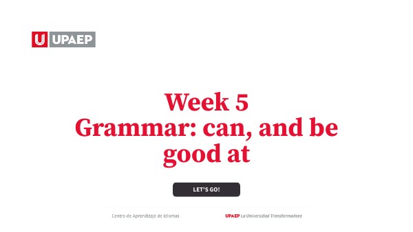 Week 5 Grammar: can, and be good at