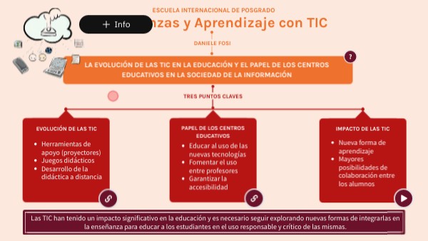 Las TIC han tenido un impacto significativo en la educación y es necesario seguir explorando nuevas formas de integrarlas en la enseñanza para educar a los estudiantes en el uso responsable y crítico de las mismas.