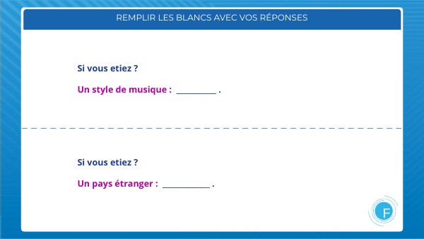Remplir les blancs avec vos réponses