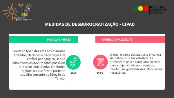 Vários documentos encontram-se desburocratizados: Documento de Identificação das Medidas de Suporte à Aprendizagem e à Inclusão (DINMSAI); Relatório Técnico-Pedagógico (RTP); Avaliações no GIAE (EPE) ; Documentos de feedback dos EE; Atas das reuniões da EMAEI, etc...)