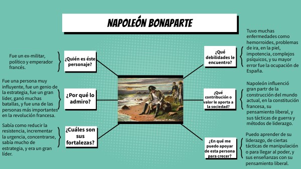 Napoleón influenció gran partr de la construcción del mundo actual, en la constitución francesa, su pensamiento liberal, y sus tácticas de guerra y métodos de liderazgo.